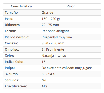 De fructificación alta. Presenta tendencia a la alternancia de cosechas, cuya recolección se realiza unos días después de la variedad Newhall, puesto que tiene algo más de ácidos totales. Esto hace que el mismo índice de madurez lo alcance más tarde que ésta, pero con una adelanto medio de unas dos semanas respecto de laWashington Navel. Sensibilidad a la clareta.
